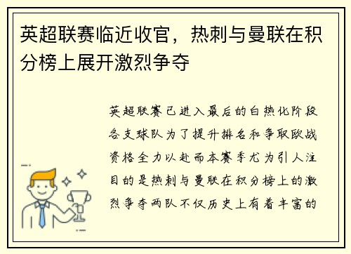 英超联赛临近收官,热刺与曼联在积分榜上展开激烈争夺